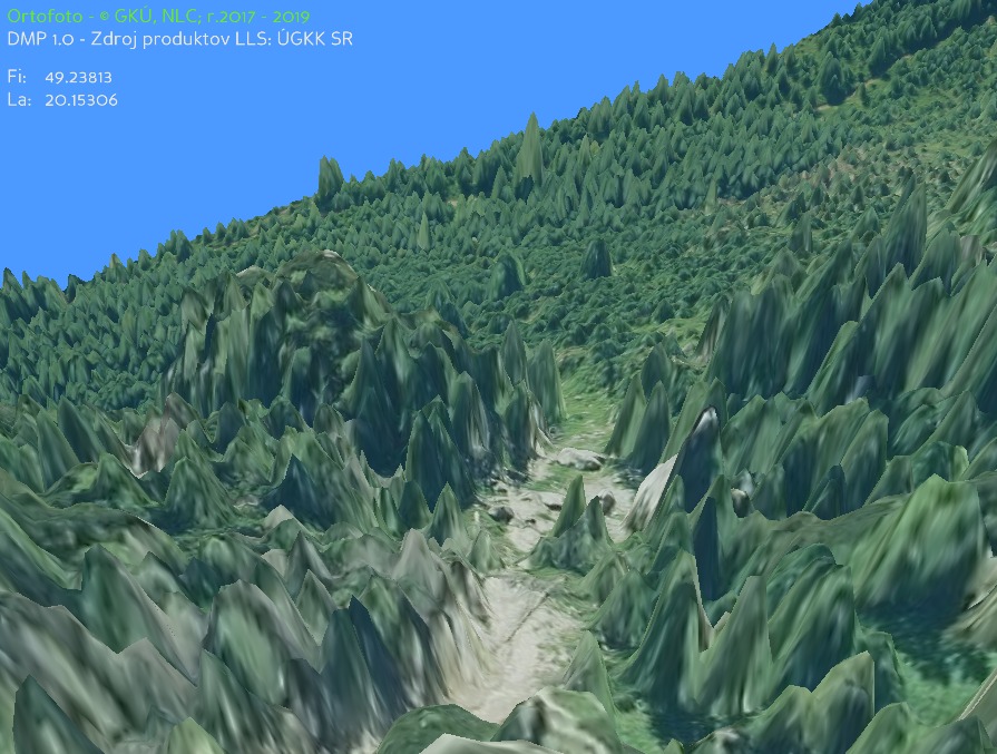 Už mám první 3D model hory z výškových dat - Digitálny model reliéfu (DMR 5.0) https://zbgis.skgeodesy.sk/mkzbgis/sk/teren?bm=dmr&z=16&c=20.147939,49.237224&sc=n#/export zatím bez ortofotomapy. Pohled ukazuje skály na východní straně.