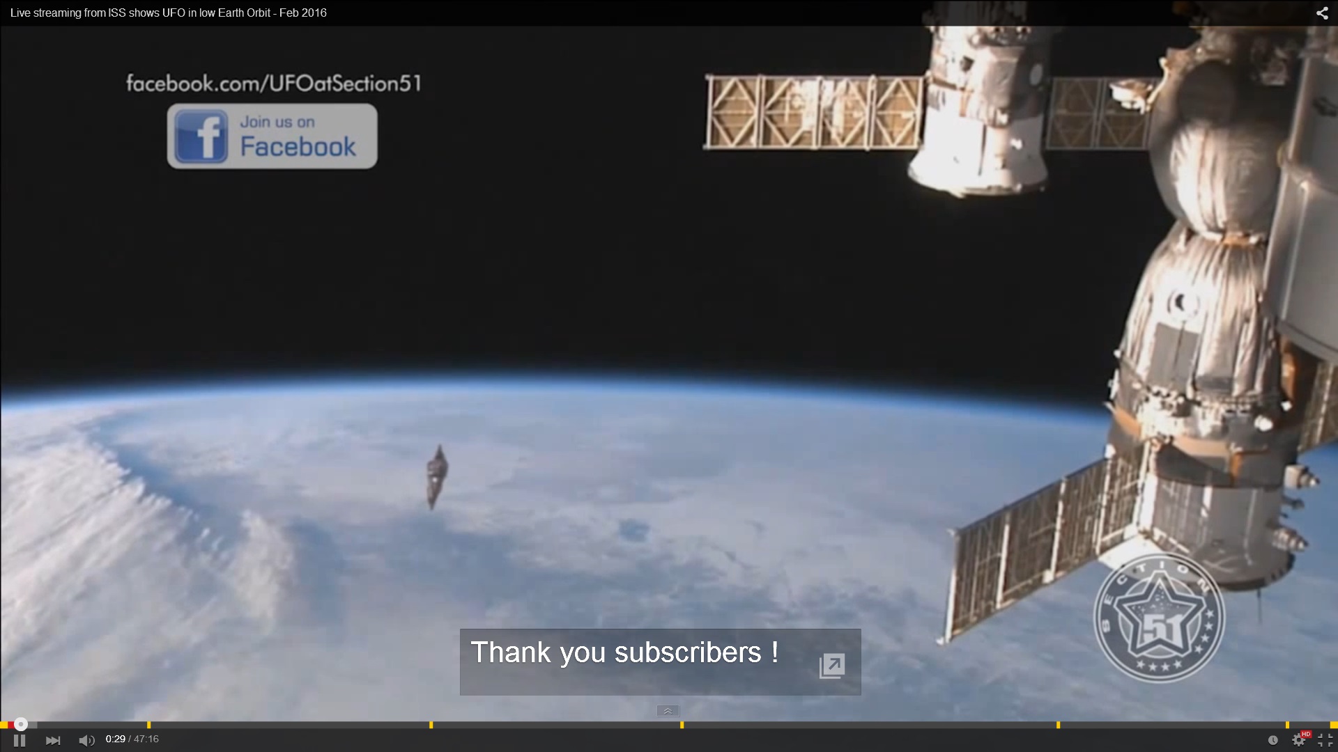 Live streaming from ISS shows UFO in low Earth Orbit - Feb 2016