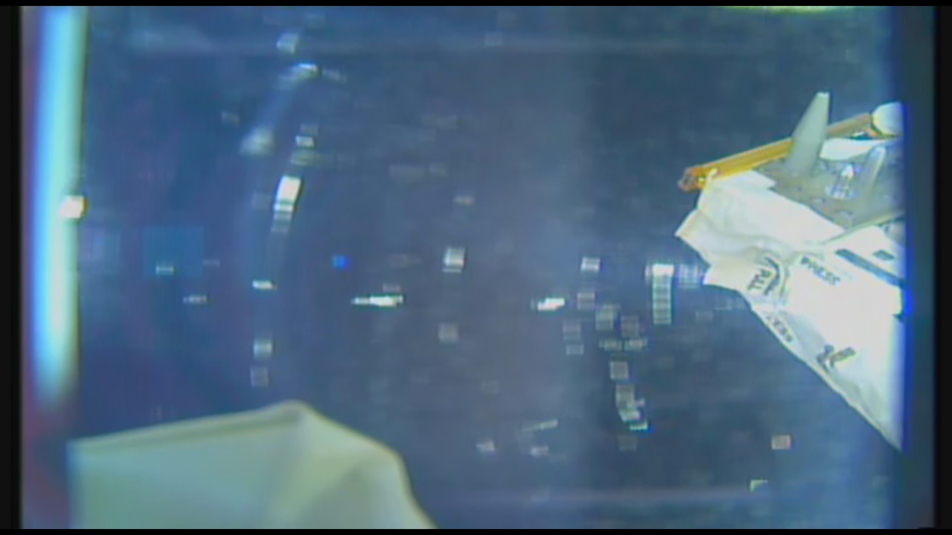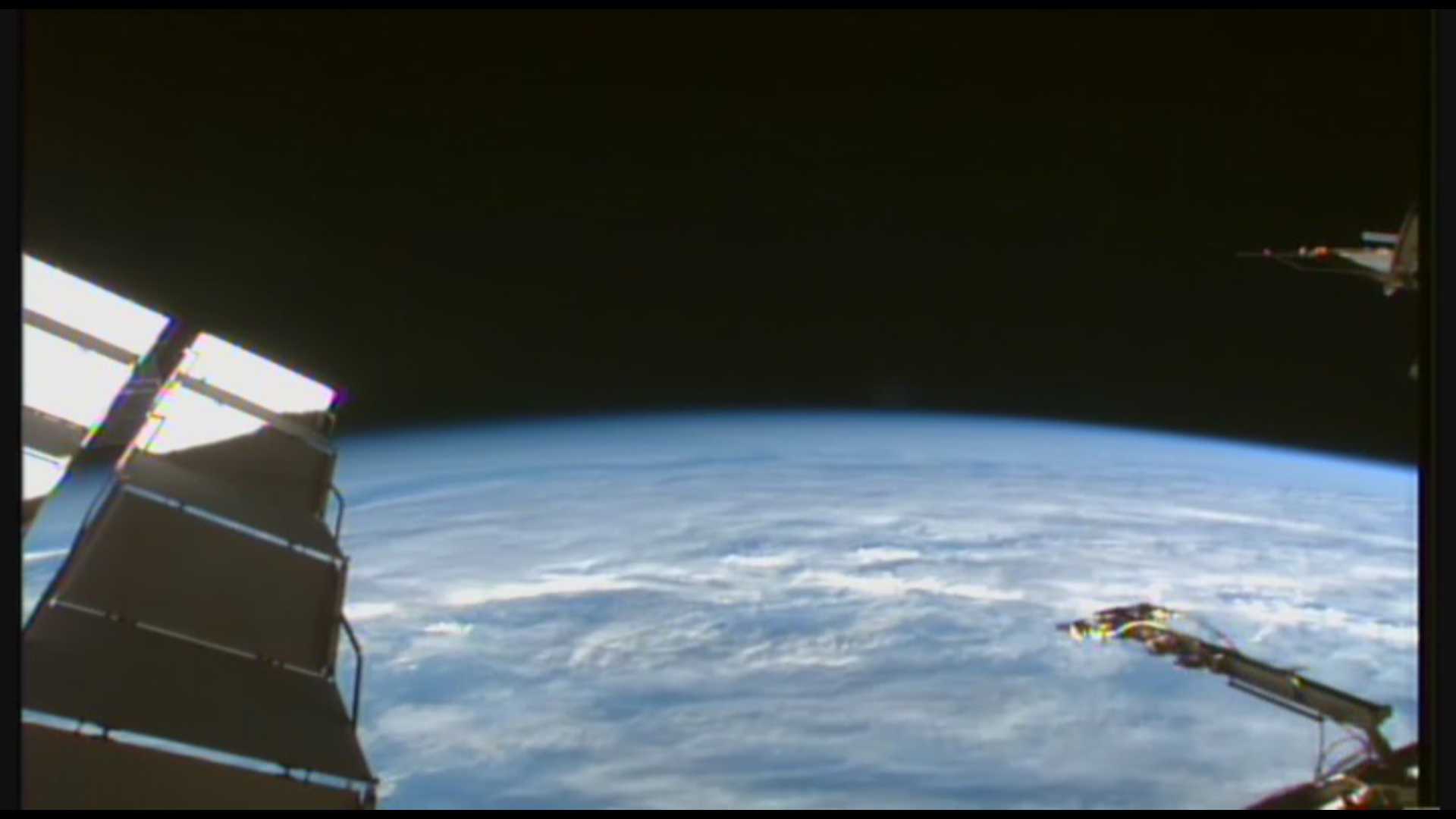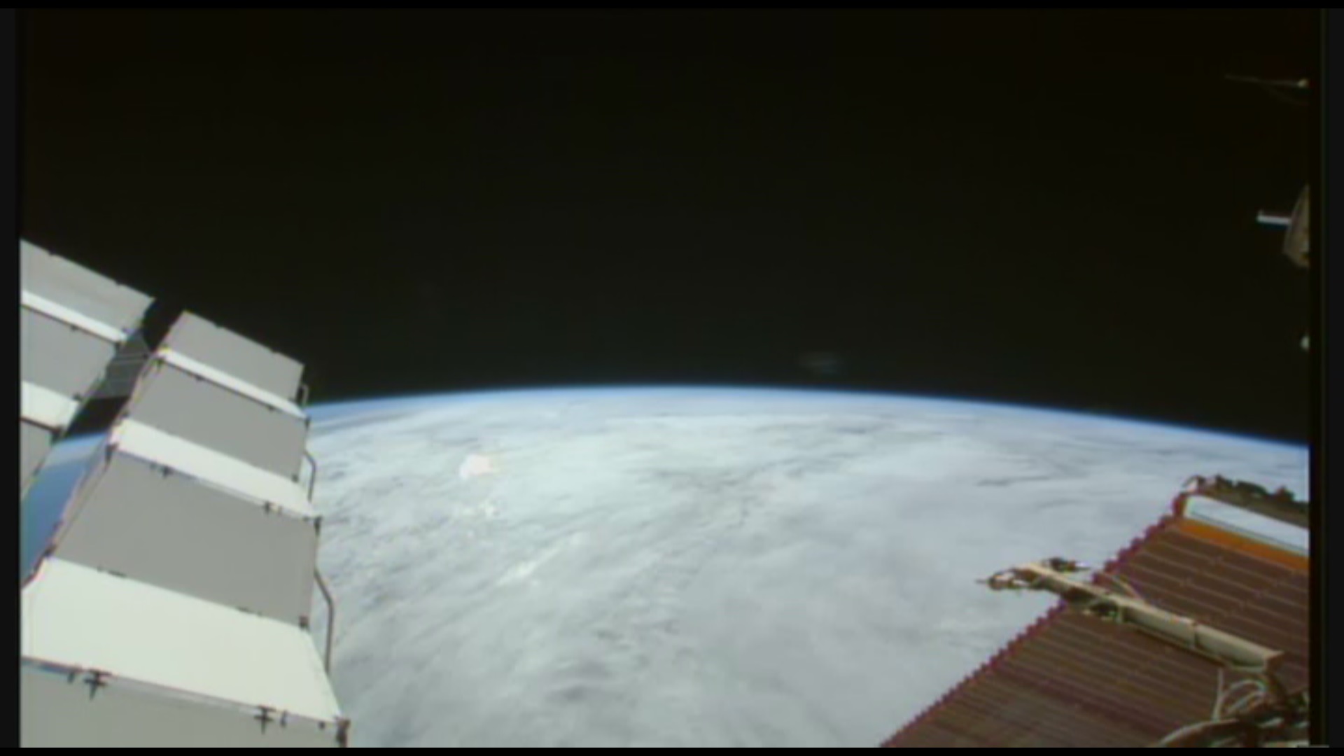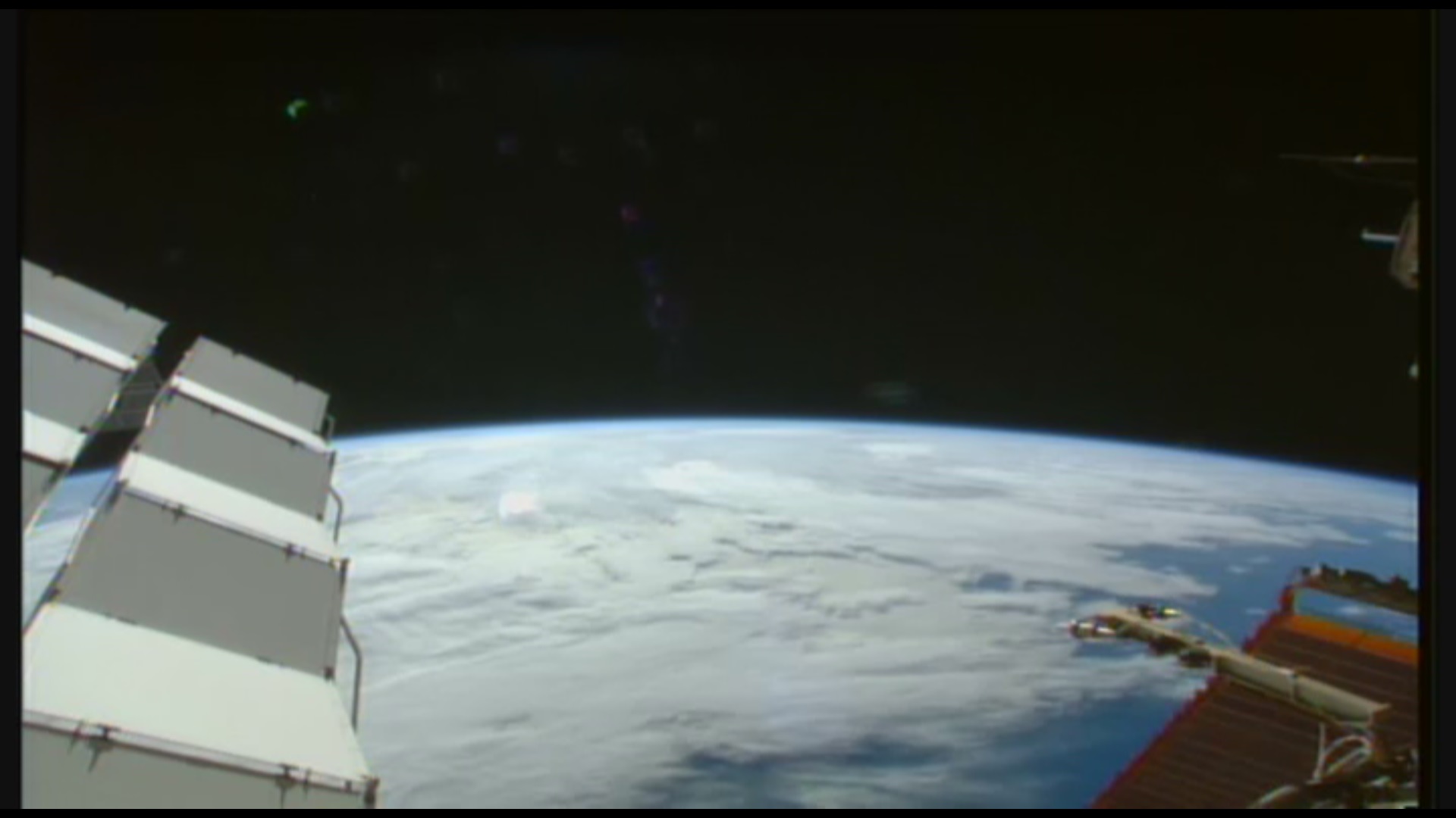 A co třeba tady, na fotce a v sestřihu z kamery na ISS z 5. března 2015, vidíš něco? Dole, při okraji snímku....?