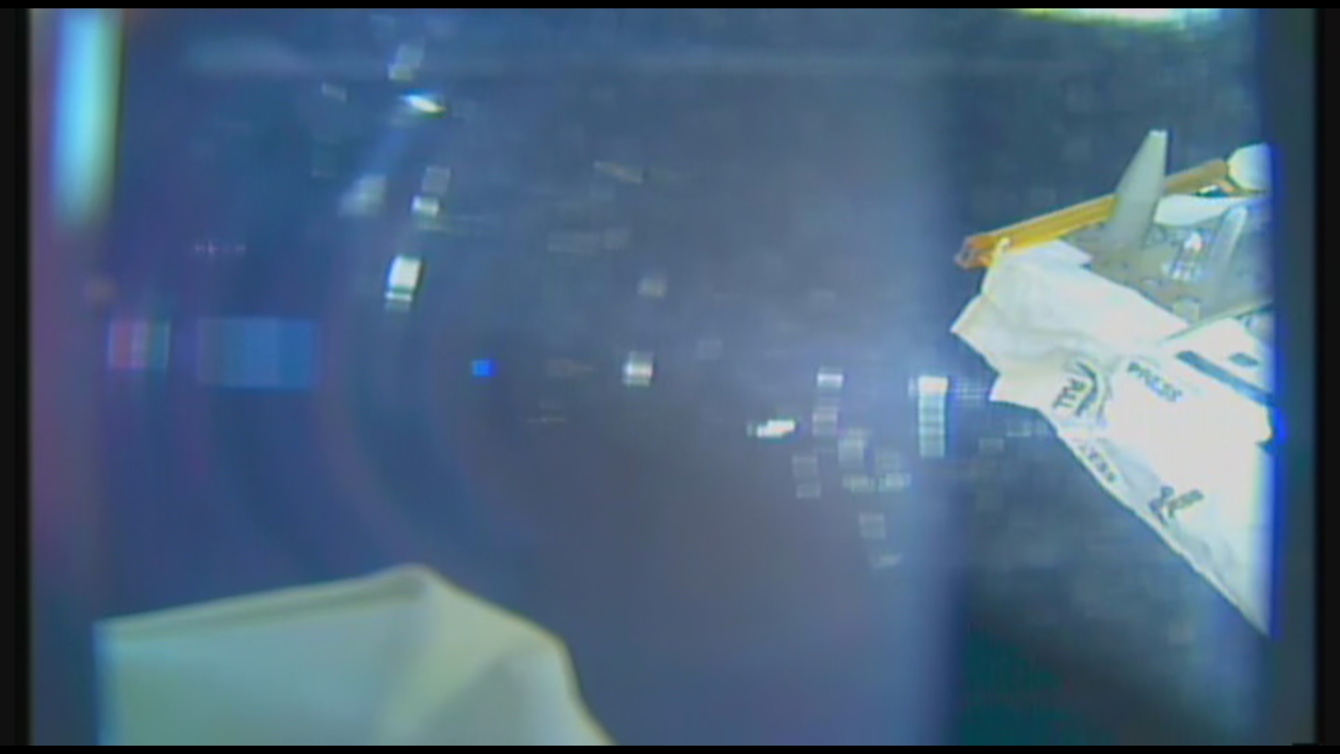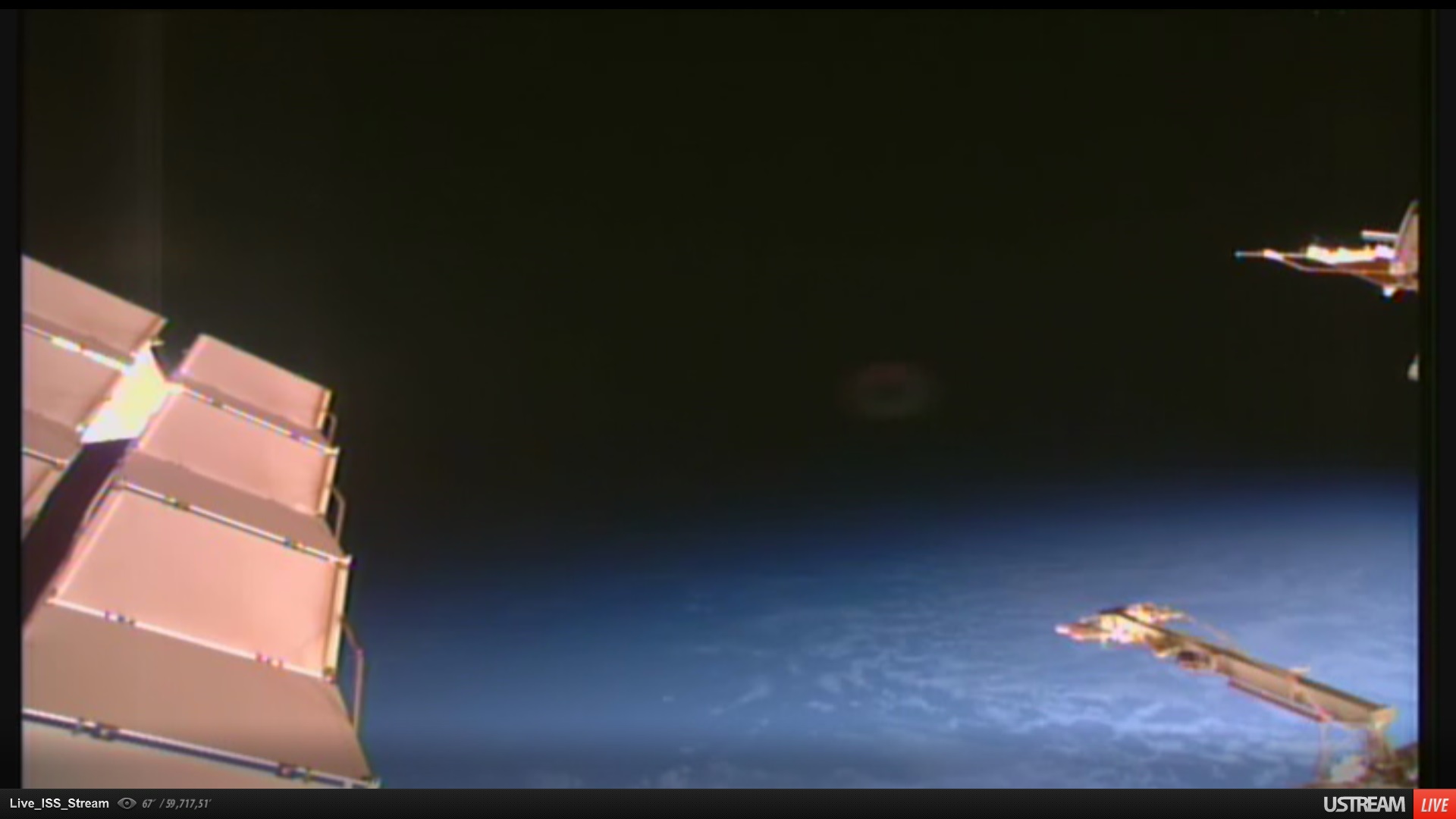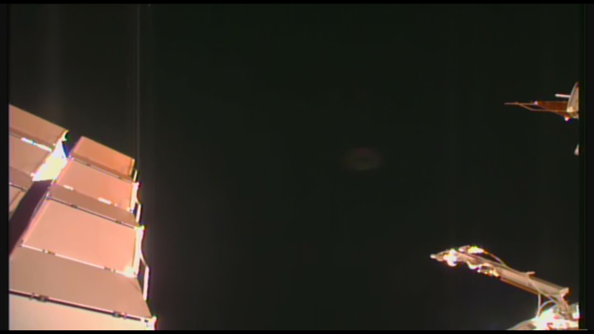 Na tom prvním obrázku jsou trochu vidět i ty obrovské "koblihy s dírou", které se vyskytovaly před orbitální stanici na nočních záběrech kamery za poslední půlrok velmi často - jeden či více kusů, někdy i s dalšími malými mimozemskými plavidly v popředí. Koblihovité UFO s dírou uprostřed je často popisováno pozemšťany v souvislosti s jejich únosy do UFO...
