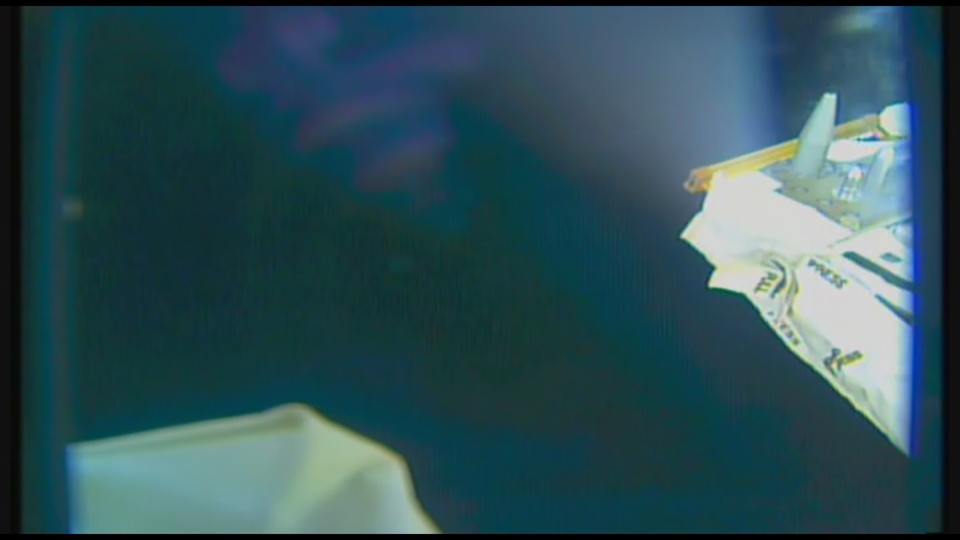 23,38 hod....kolem stanice se právě producírovalo spousta podivných světel....záběr kamery silně zrnil, asi byla stanice pod vlivem nějakých těch magnetických polí, v kterým bývají zabalené lodě mimoušů...