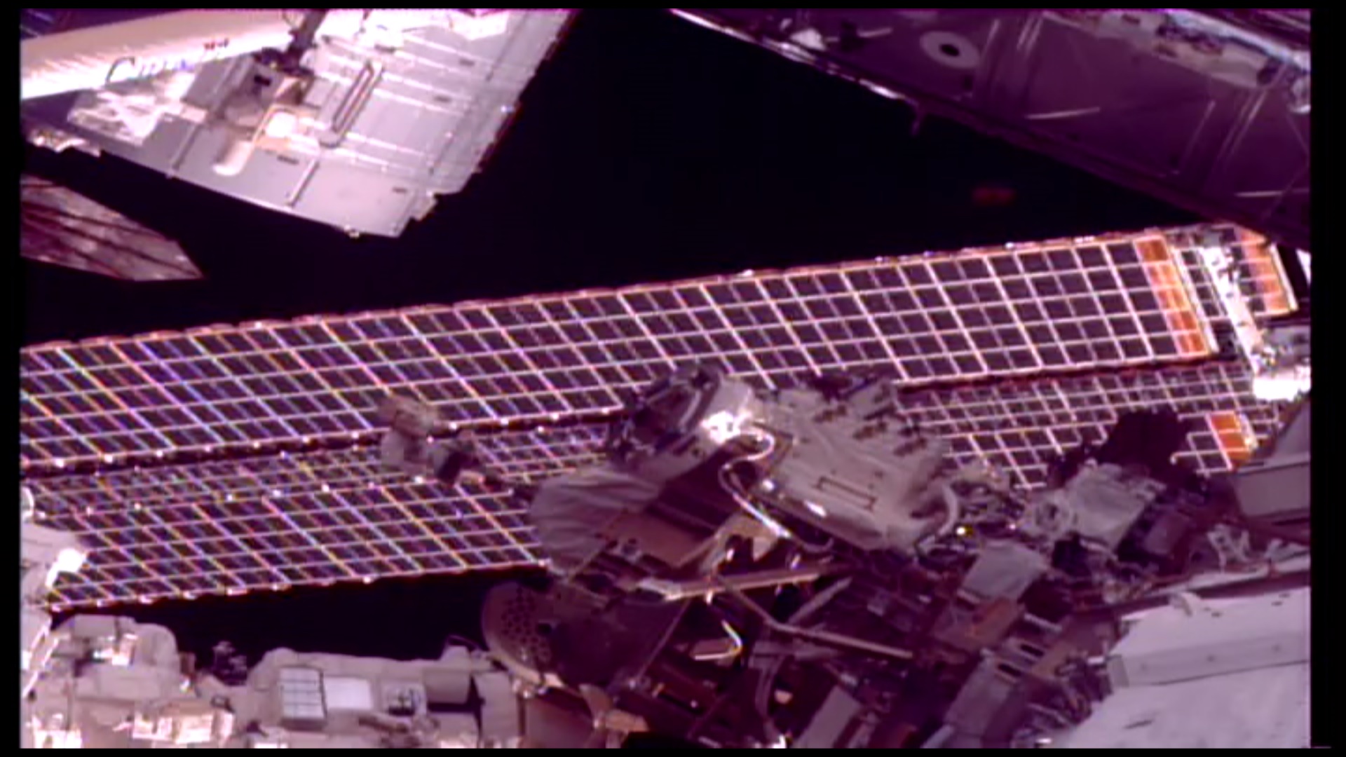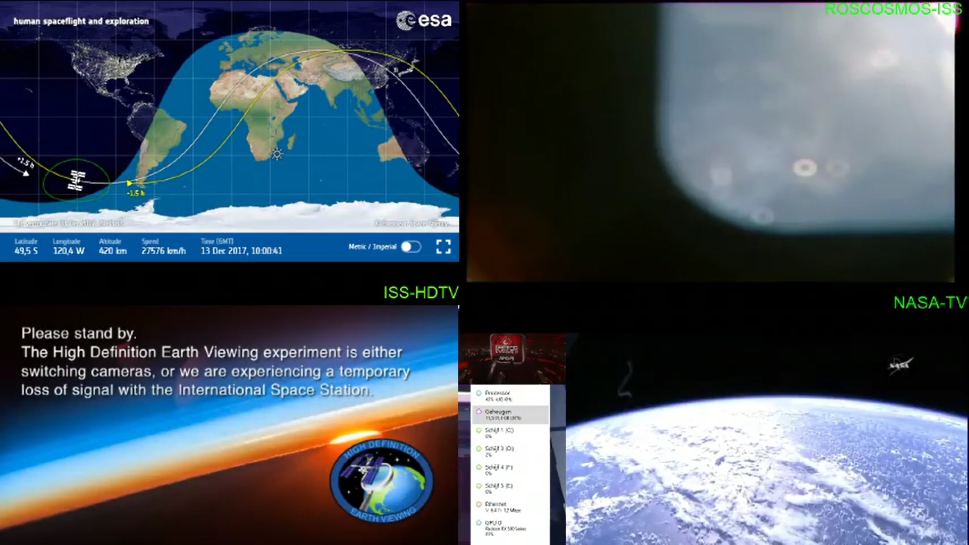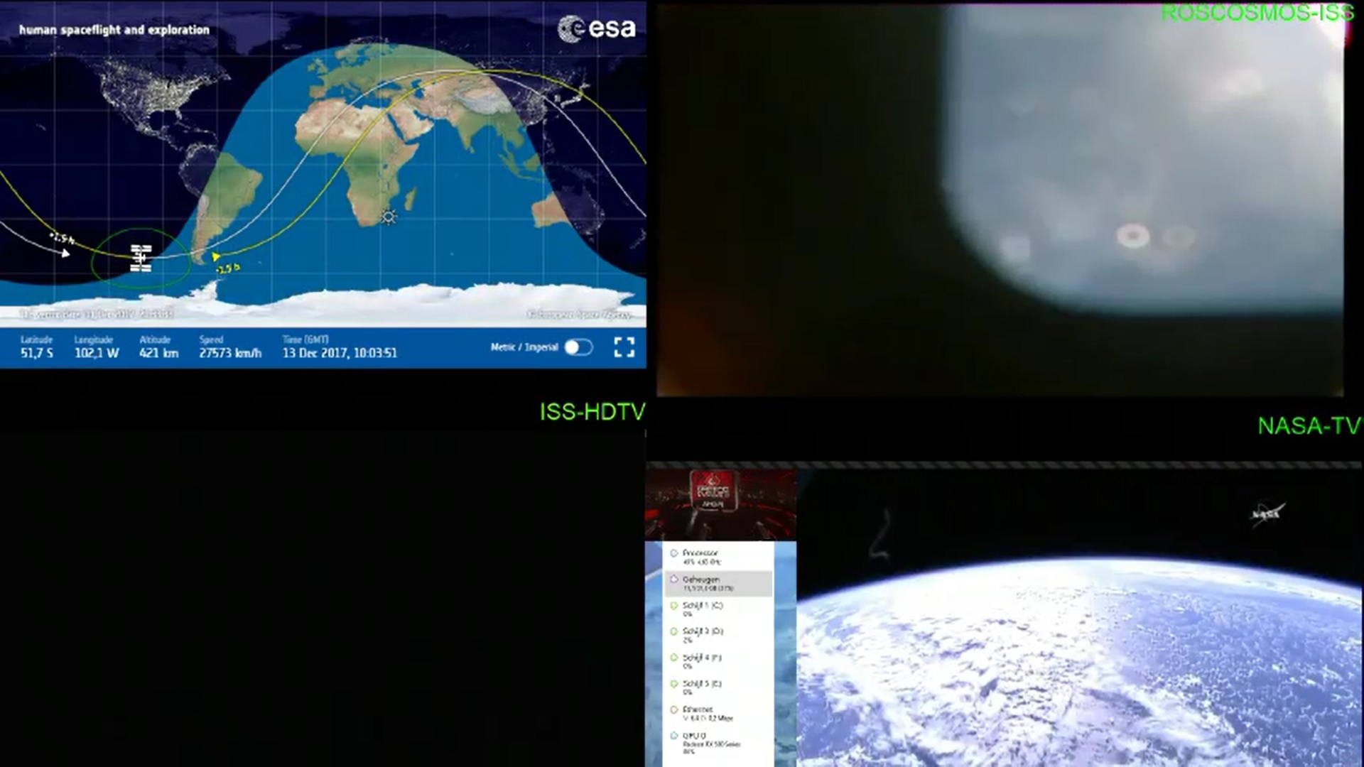 20.12.2017...v 15.09.44....před chvílí...cosi rychle proletělo kolem ISS...na lesklém povrchu stanice se cosi svítícího odráželo....nějaký oválný disk..... :lol: