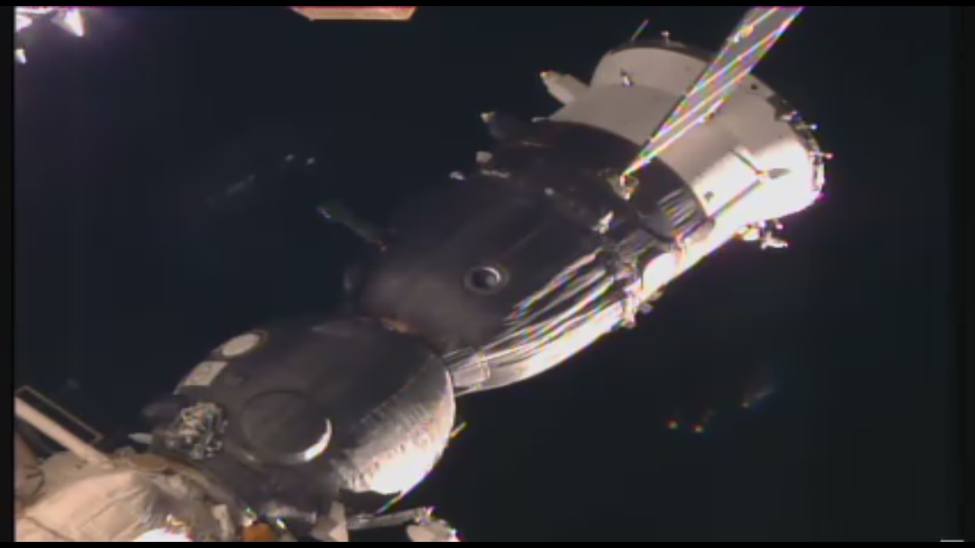 Posádky - jedna odletěla domů, druhá tam chvíli byla sama, třetí přibyla na stanici, Labuť (nákladní box) též v pořádku přisedla na stanici, a nyní je na orbitu konečně klid... všelijaké světelné mlžné skvrnky na monitoru kamery, které se na pár dní odstěhovaly bůhví kam, mají zase pré.... :ahoj2: