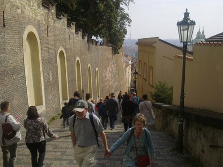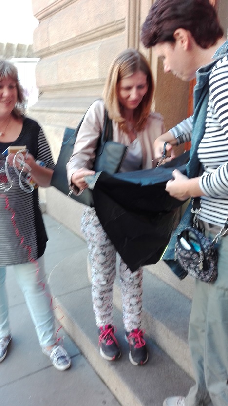 čímž jsme se na schodech Národního divadla stali terčem pozornosti všech kolemjdoucích, včetně policejní hlídky