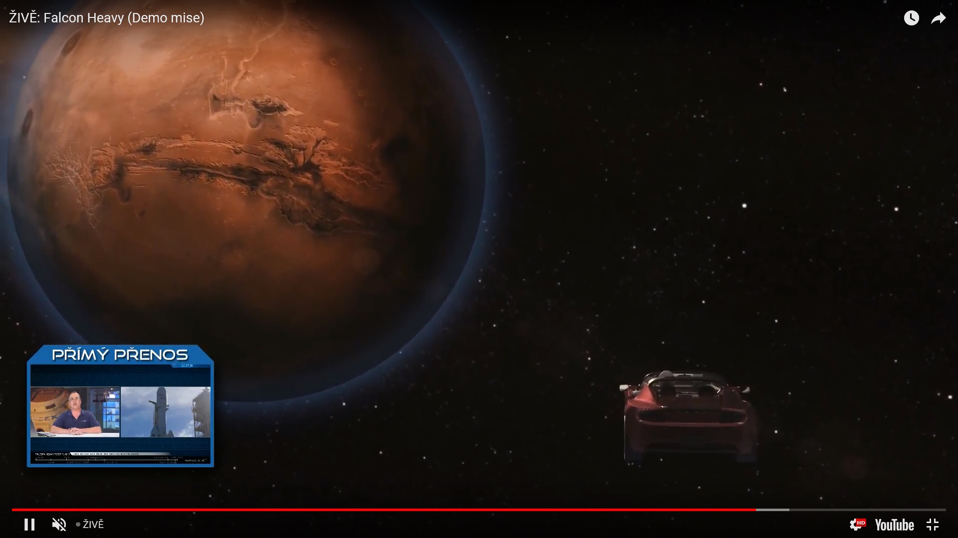 Elon Musk zveřejnil fotografii umělohmotného kosmonauta v Tesle v pozadí s půlměsícem Země a k ní napsal: „Poslední snímek Starmana v Roadsteru na jeho cestě k oběžné dráze Marsu...“ Tesla Roadster byla v úterý vyslána do vesmíru na palubě rakety Falcon Heavy z Mysu Canaveral na Floridě. Samotný start byl testem těžké rakety společnosti SpaceX a elektromobil na palubě sloužil jako zkušební zátěž místo nějakého nudného nákladu, jak se nechal slyšet Musk.