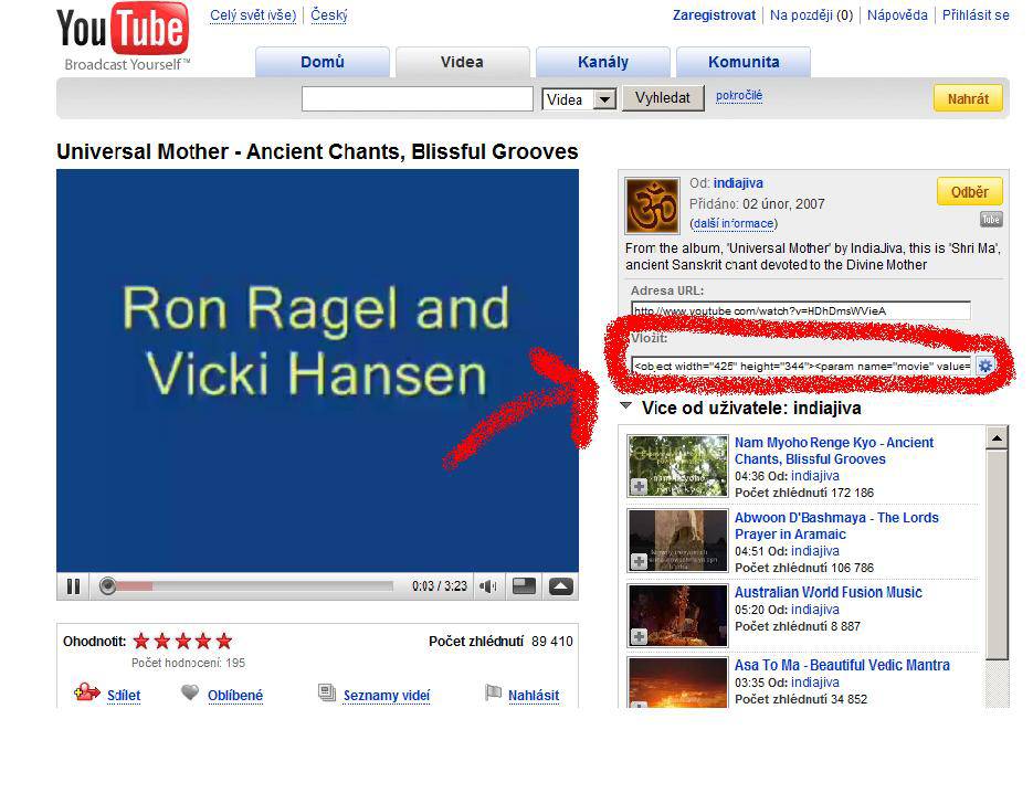 moje první zarážečka, když jsem zjistil, že www adresa nestačí: safra, co je to ten embeb kód :evil: a kde ho najít? :Studuji: Tu stránku jsem si vpravo pořádně neprohlídl a ze zoufalství jsem tam dával i název té písničky nad videem. :oops: