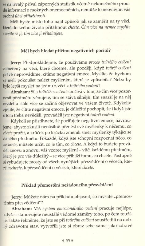 peto píše:Vlastne tu je to o tom, ze Abraham hovori cisto o tom, ze treba sa orientovat na veci, ktore chceme. Ale u inych autorov sa mozme stretnut, ze treba aj konkretnejsie najst zhubne myslienky a ako sinelnikov hovori, vytvorit nove modely spravania v urcitych situaciach. Abraham nejako nehovori, ze ked chceme mat viac penazi, musime sa pozriet do vnutra, co to asi sposobilo, a len sa to odrazilo na fyzickej urovni. Len sa treba preoientovat na bohatsvo a ono pride.